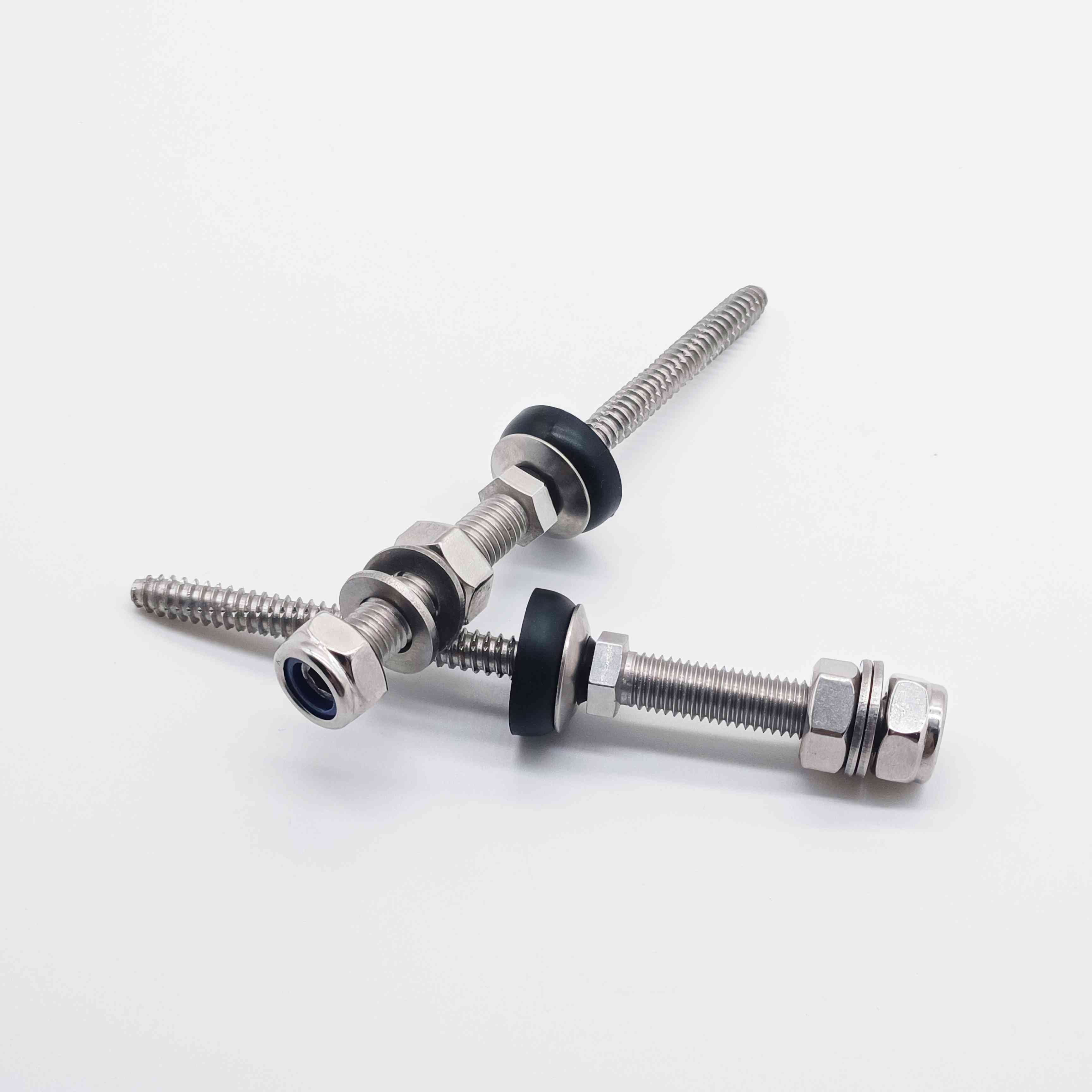Le viti sono un altro elemento di fissaggio comunemente usato e solitamente sono realizzate in acciaio inossidabile o lega di alluminio.Le viti possono essere ruotate per fissare la posizione dei pannelli solari sulla staffa e possono essere regolate all'altezza e all'angolazione appropriate.
