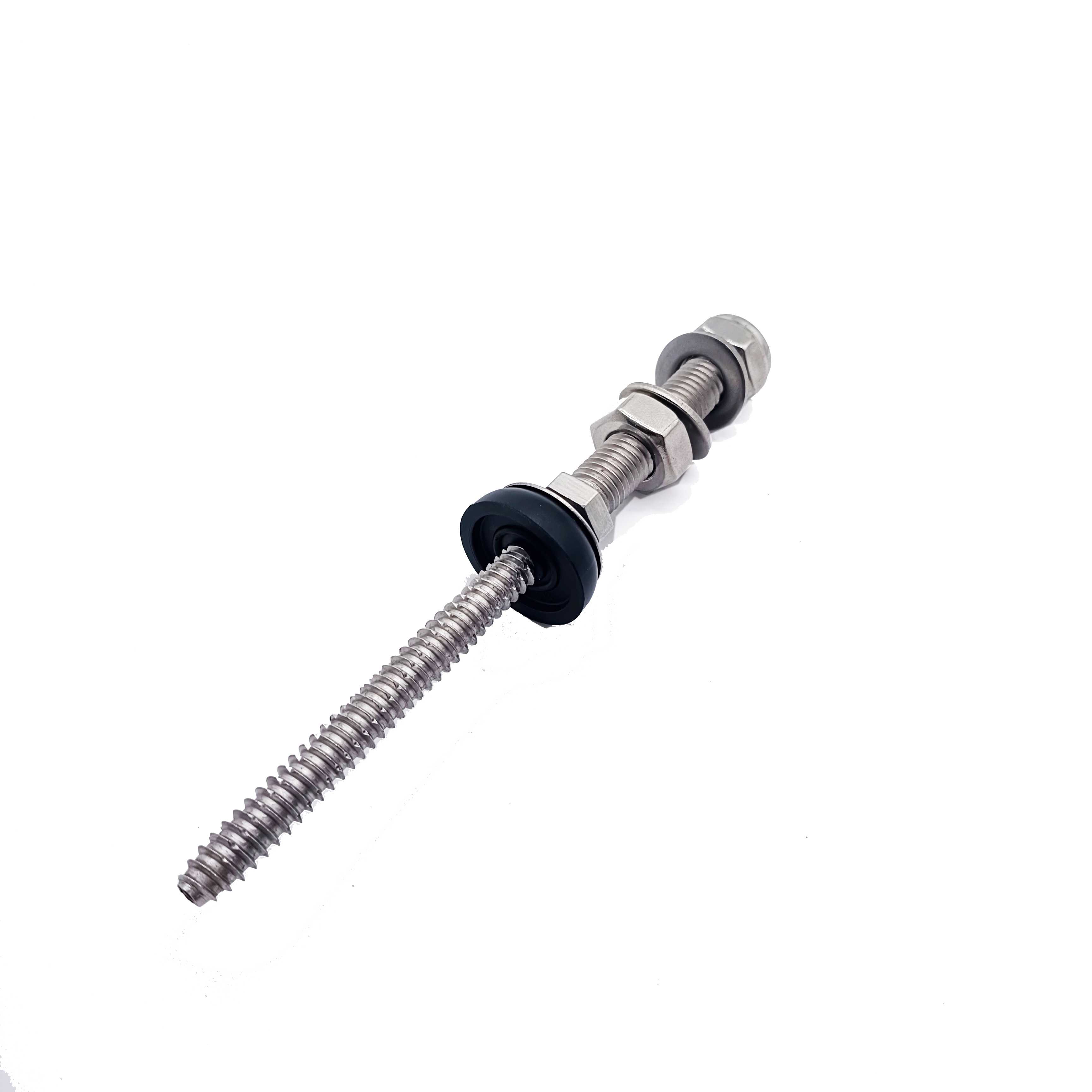 Il bullone di sospensione è un accessorio comunemente usato per il sistema di montaggio su tetto solare, è realizzato in acciaio inossidabile, adatto per l'installazione su tetto in metallo ondulato, piastrelle in acciaio di colore trapezoidale, piastrelle in amianto, ecc. I perni sono realizzati in acciaio inossidabile 304 con dadi flangiati M10 e Cuscinetti in EPDM, che li rendono adatti al montaggio su travi in legno e acciaio.Entrambi i tipi di piedini a L o piastre regolabili possono essere utilizzati insieme.