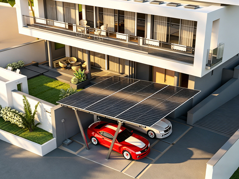 Rispetto ai tradizionali sistemi montati a terra, le strutture per posti auto coperti solari offrono un valore funzionale più elevato per metro quadrato.